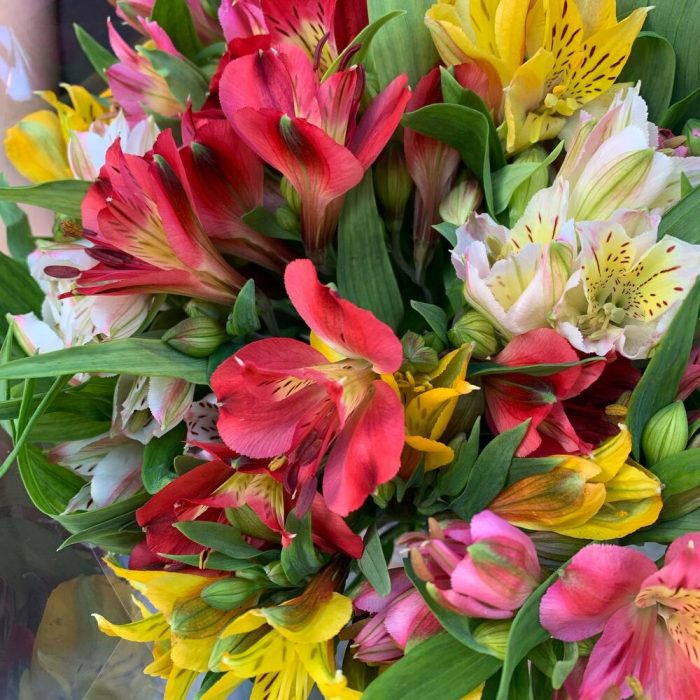 Букет из 15 разноцветных альстромерий