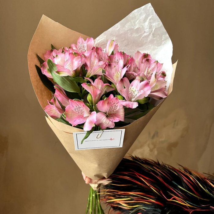 Альстромерия розовая – 7 шт.Дизайнерская упаковка – 1 шт.