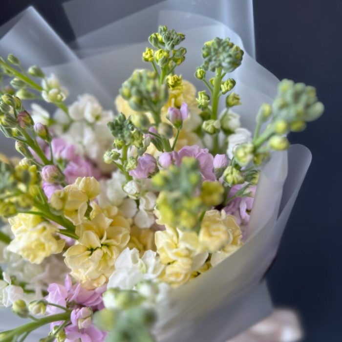 Маттиола – 15 шт.Атласная лента – 1 шт.декоративная упаковка – 1 шт.