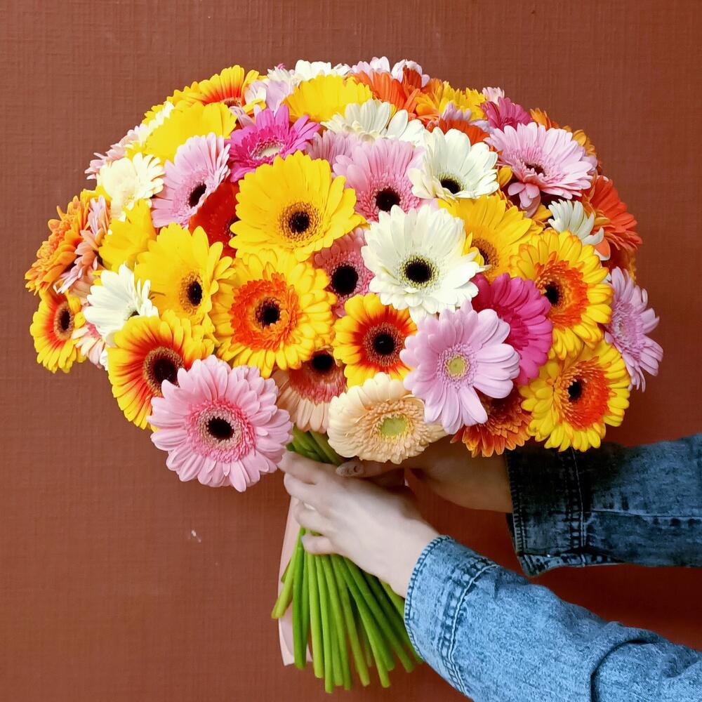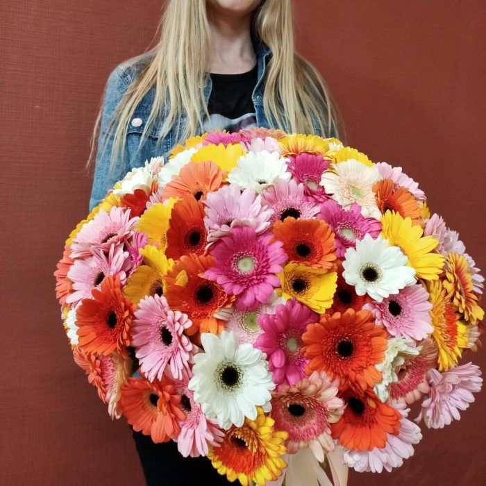 Лента атласная – 2 шт.Гербера – 101 шт.