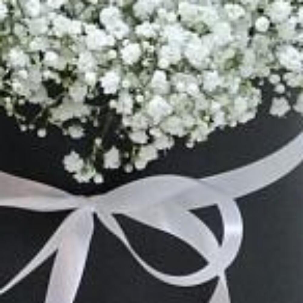 Белая гипсофила в шляпной коробке