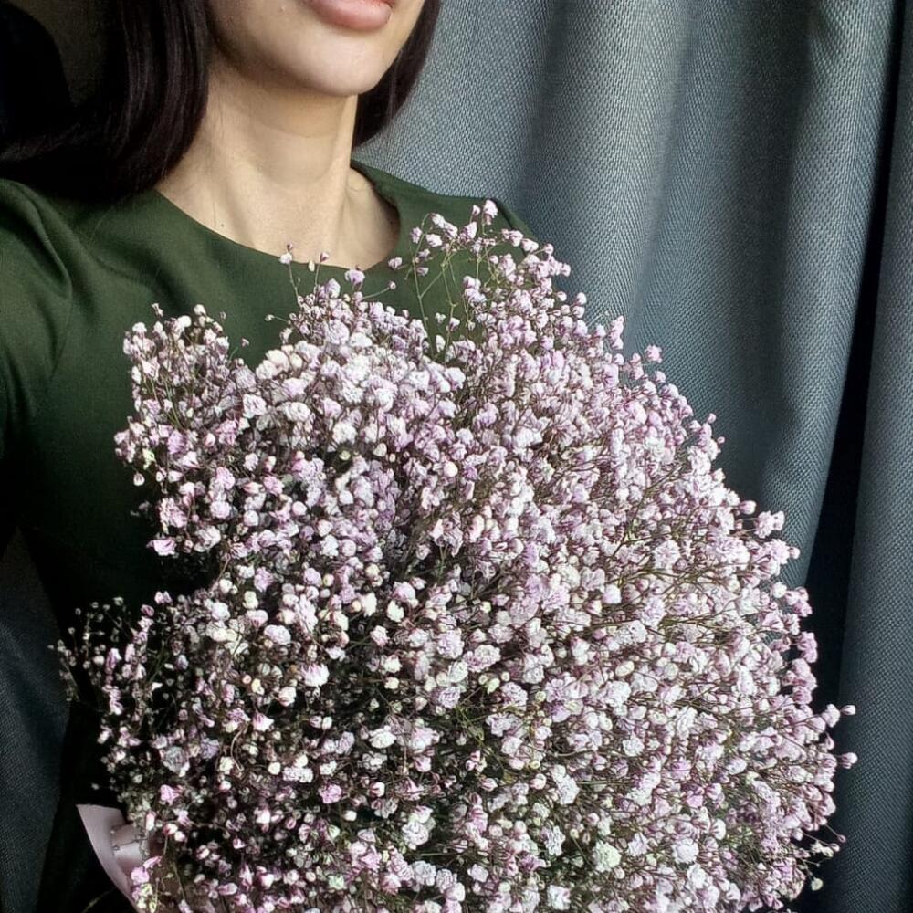 Гипсофила – 25 шт.Лента атласная – 1 шт.Пакет подарочный – 1 шт.