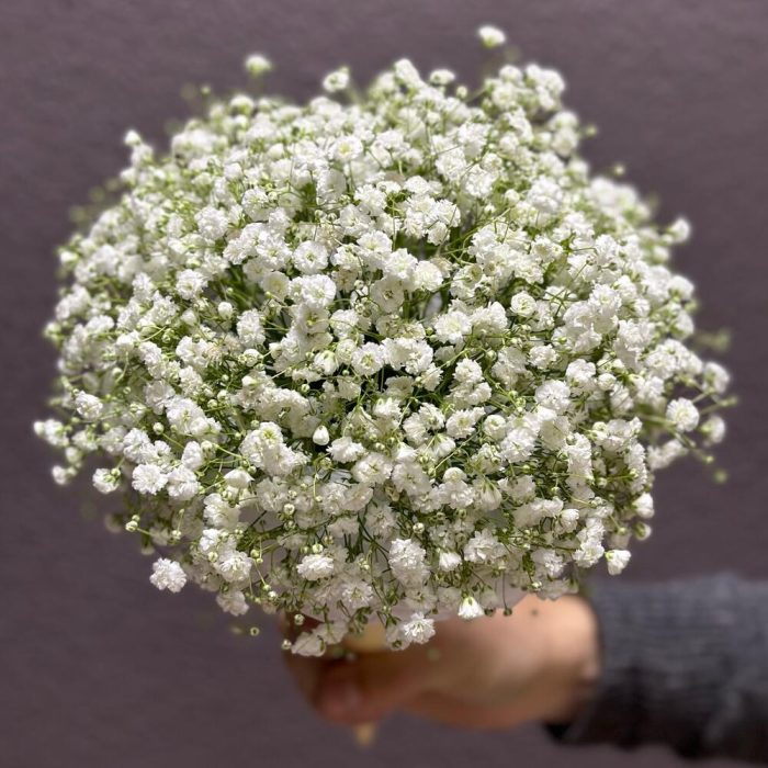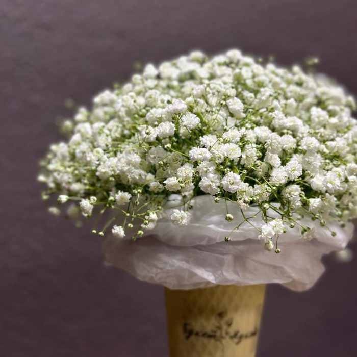Гипсофила – 4 шт.Тишью – 1 шт.Оазис флористический – 1 шт.рожок декоративный – 1 шт.