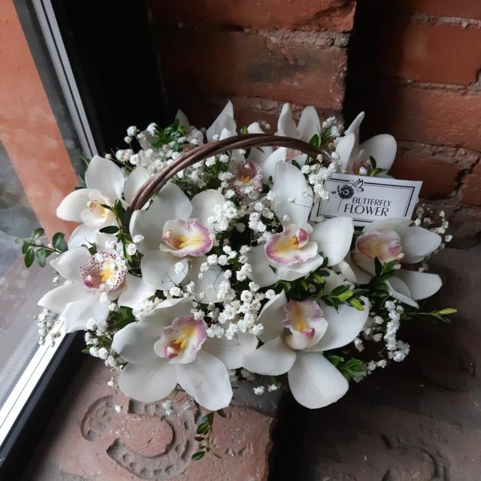 ЦИМБИДИУМ – 11 шт.Самшит – 5 шт.Гипсофила – 5 шт.Корзина – 1 шт.Оазис – 1 шт.