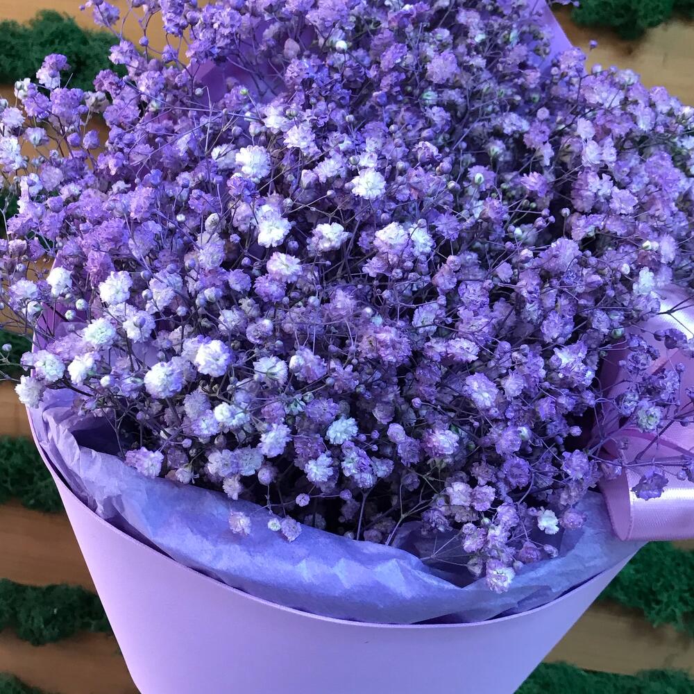 Гипсофила – 7 шт.Лента атласная – 2 шт.Упаковка дизайнерская – 2 шт.