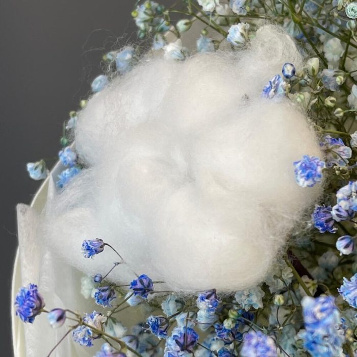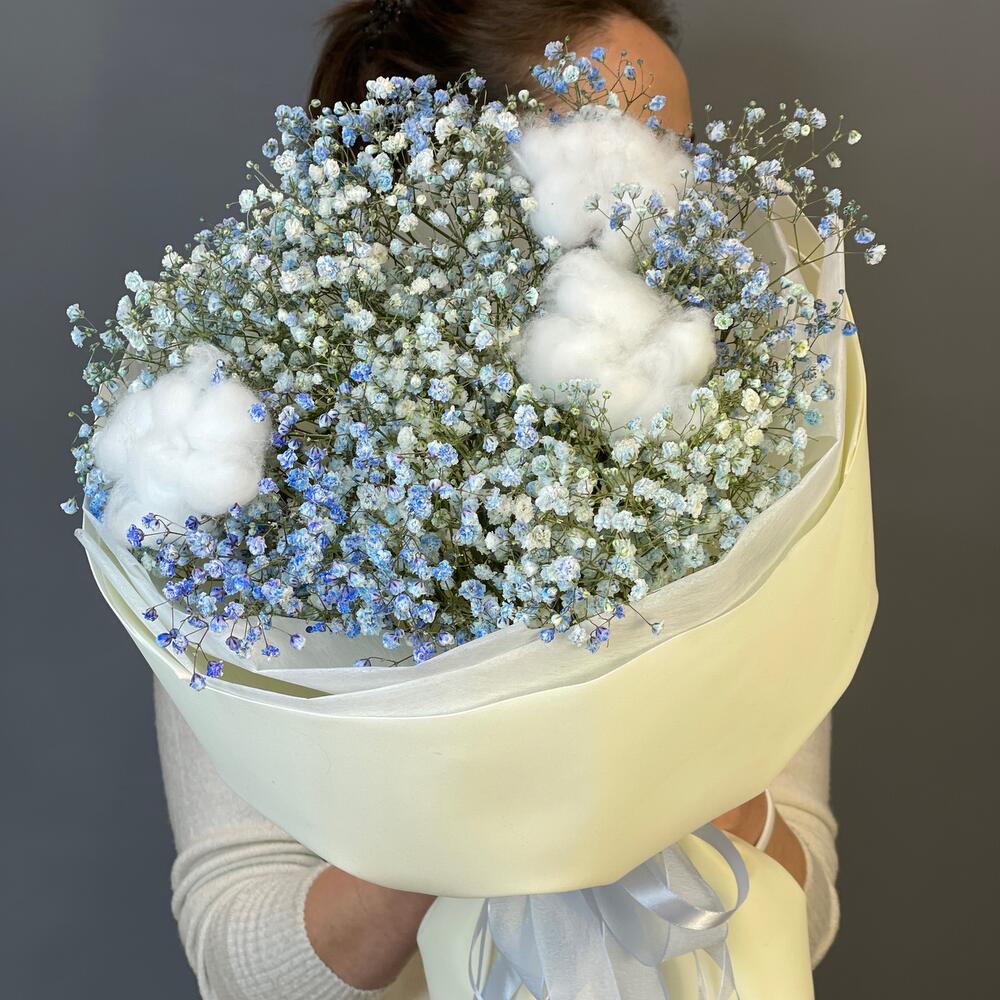 Букет с голубой гипсофилой и хлопком «Облачко»
