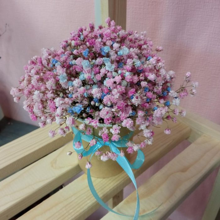 Лента атласная – 1 шт.Оазис флористический – 1 шт.стакан кофейный – 1 шт.гипсофила радужная – 2 шт.