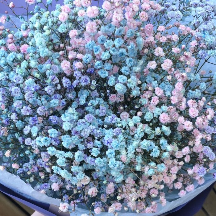 Лента атласная – 3 шт.Тишью – 2 шт.гипсофила цветная – 5 шт.пленка матовая градиент – 5 шт.