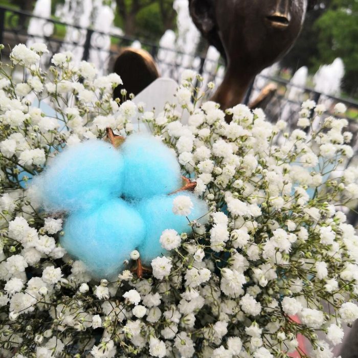 Гипсофила – 3 шт.Хлопок – 1 шт.Лента атласная – 1 шт.Оазис флористический – 1 шт.конверт картонный – 1 шт.