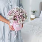 “Сиреневый туман” – композиция из гипсофилы в шляпной коробке