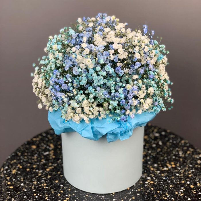 Голубая гипсофила в шляпной коробке М