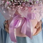 “Сиреневый туман” – композиция из гипсофилы в шляпной коробке