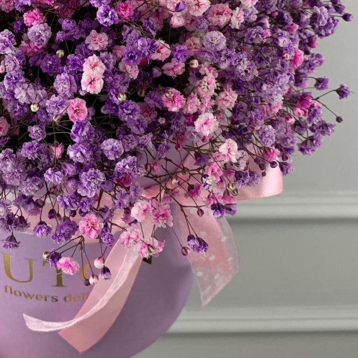 цилиндр 16 см – 1 шт.Оазис флористический – 1 шт.Гипсофила – 7 шт.Лента атласная – 1 шт.