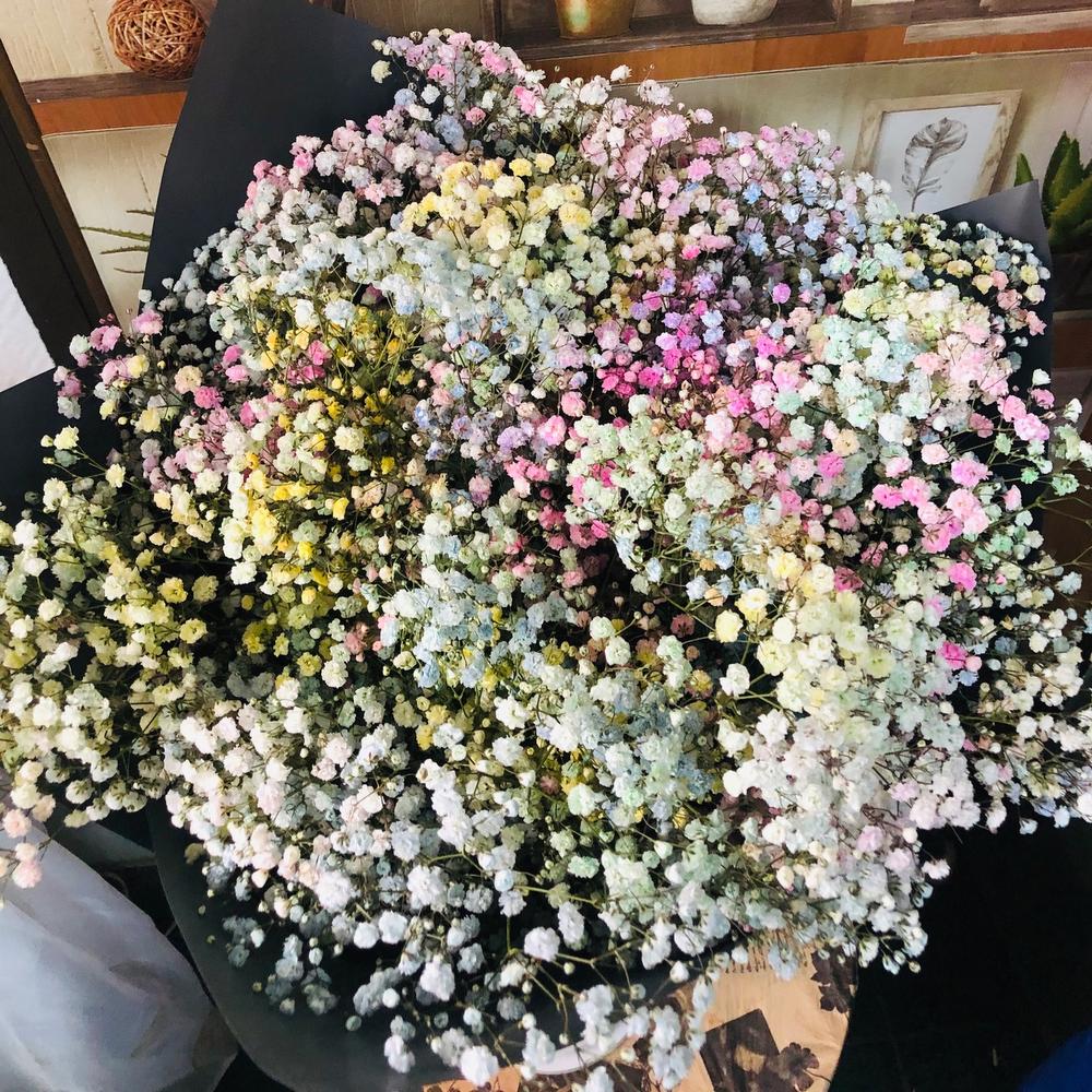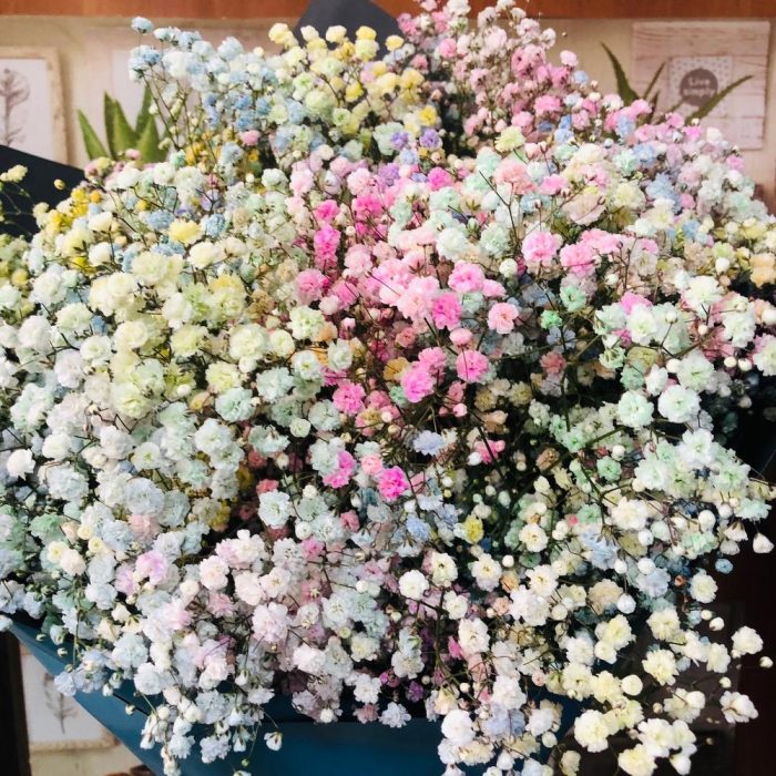 гипсофила радужная голландская – 15 шт.Упаковка дизайнерская – 4 шт.Лента атласная – 1 шт.