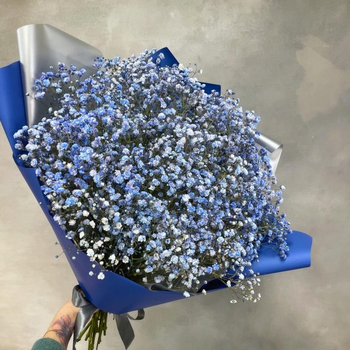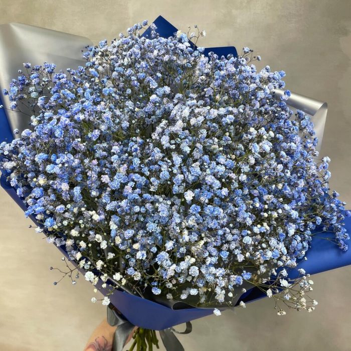 Пушистое облако голубой гипсофилы. Интересный цветочный подарок на День рожденья, выписку из роддома. Подойдёт на рождение мальчика.