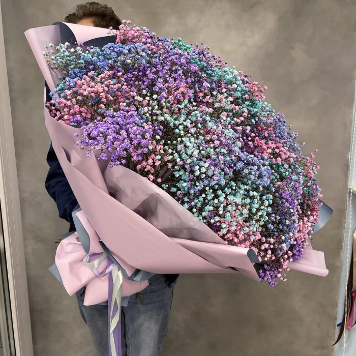 Огромная охапка цветной гипсофилы вскружит голову и навсегда запомнится вашей любимой. Невероятные впечатления обеспечены.