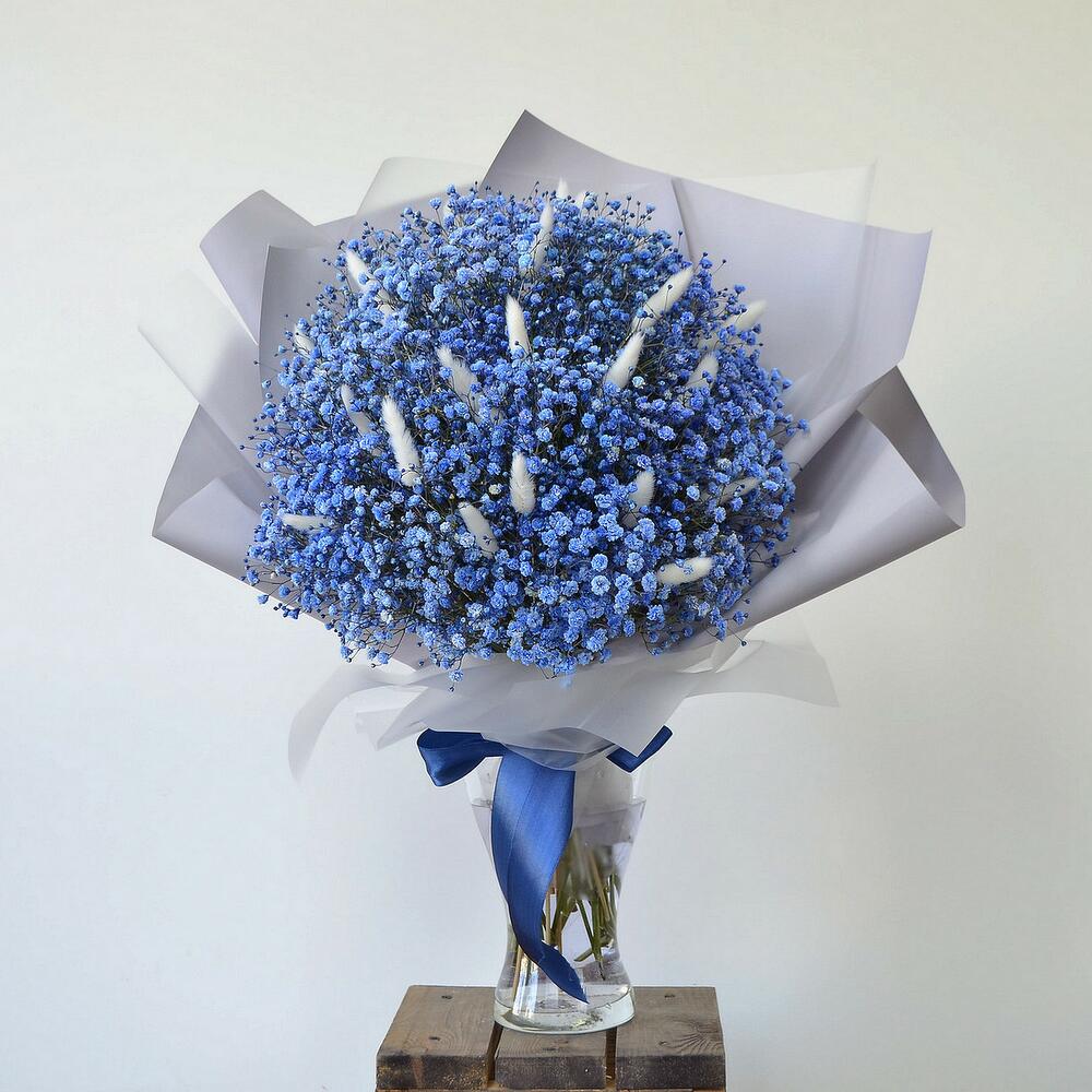 Оригинальный букет из синей гипсофилы