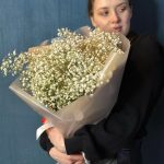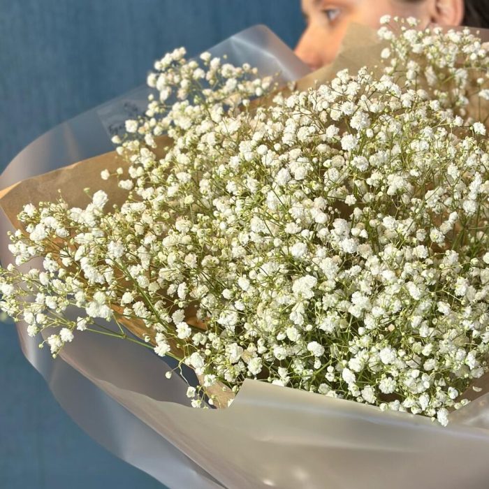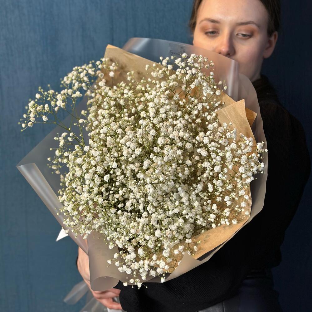 Гипсофила – 9 шт.Лента атласная – 1 шт.Крафт – 2 шт.Пленка дизайнерская – 2 шт.