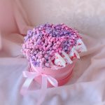 Радужная гипсофила в шляпной коробке с конфетами Raffaello