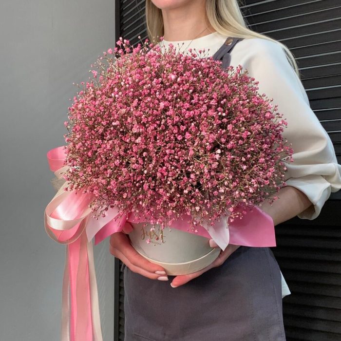 Гипсофила – 7 шт.Коробка шляпная – 1 шт.Оазис флористический – 1 шт.