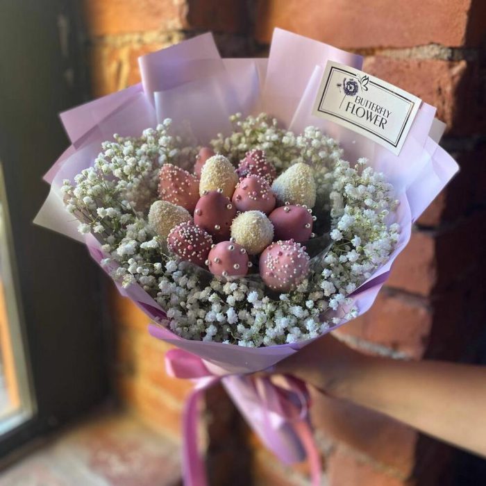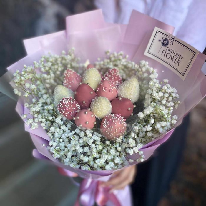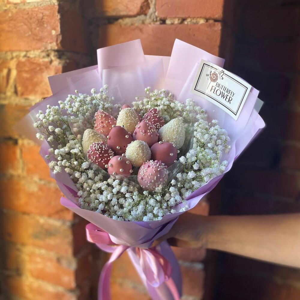 Вкусный букет "Яркая мечта" Клубника в шоколаде и розы