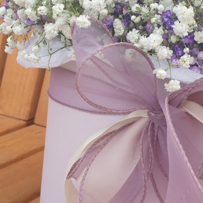 «Лавандовое созвездие» Букет из розы, гвоздики, статица и хлопка