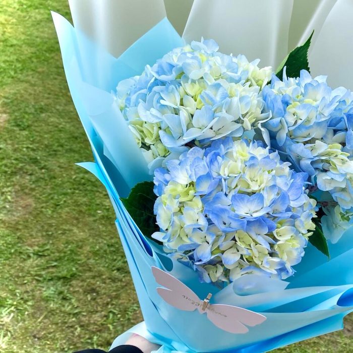 Голубой букет из 3 гортензий «Облачко»