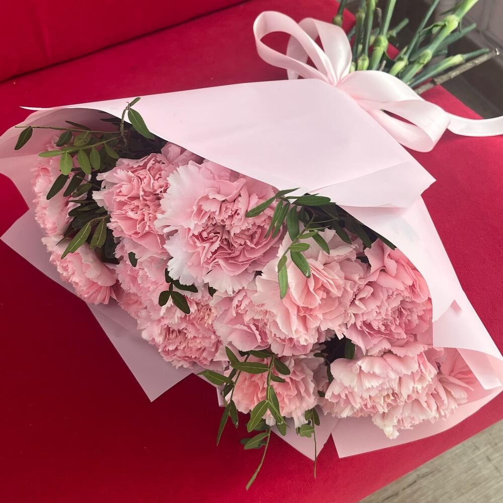 Зелень – 1 шт.Упаковка – 1 шт.Лента атласная – 1 шт.Диантус – 15 шт.