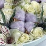 “Атлас☁️” – цветочная композиция с зефиром в деревянном ящике