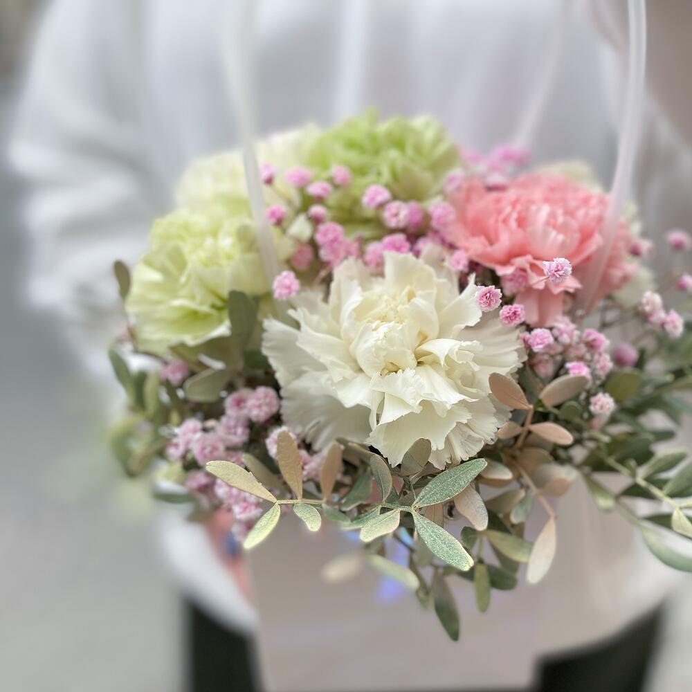 Диантус – 7 шт.Гипсофила – 1 шт.Фисташка – 1 шт.Оазис – 1 шт.Сумка – 1 шт.