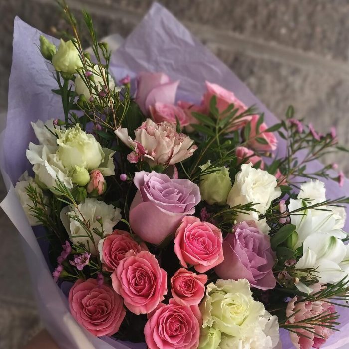 Категории: АльстромерииРозы, Гвоздики, Кустовые розы, Лизиантусы