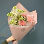 Нежный букет комплимент с маттиолой и пионовидной розой