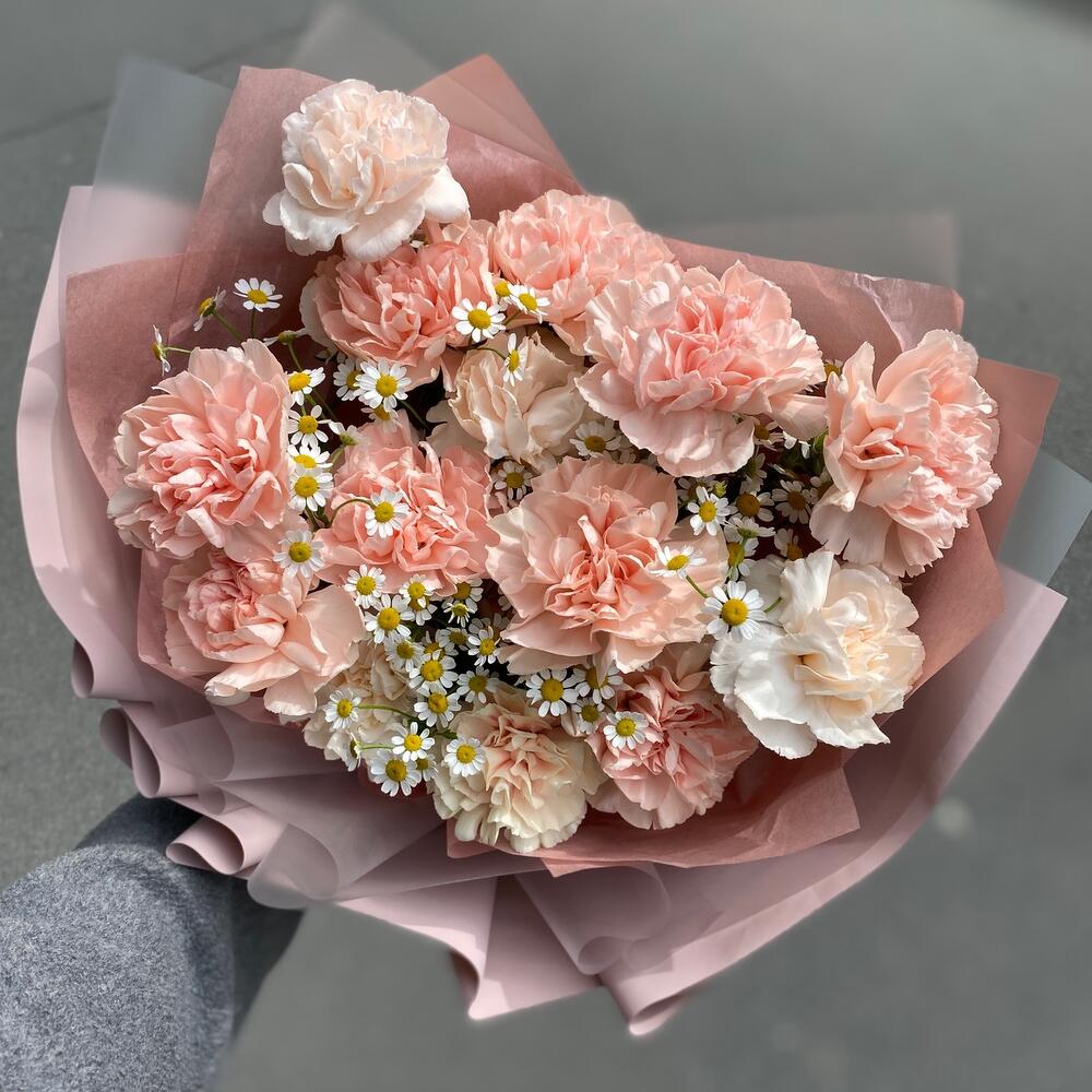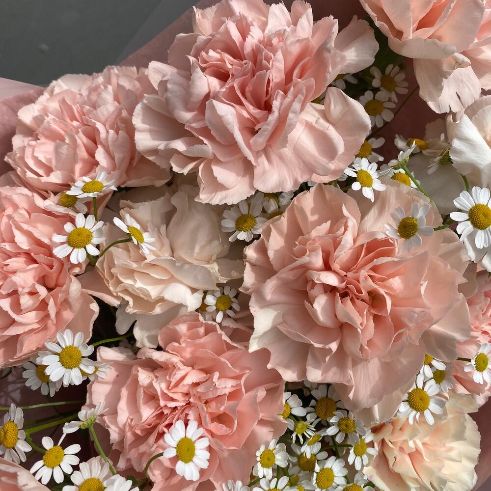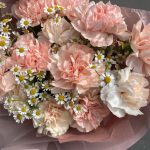 Она любит букеты, которые долго стоят(ромашки+гвоздика)