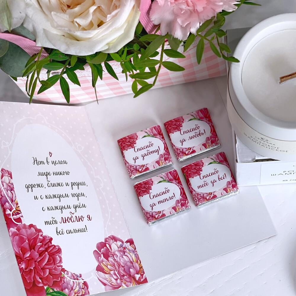 В этом чудесном подарочном наборе мы собрали все самое лучшее для Вашей мамы:- цветочная композиция в нежной гамме, в составе которой ароматная пионовидная роза, гвоздики, альстромерии- открытка с шоколадками, каждая из которых несет в себе трогательные слова для мамы- … Показать ещёАроматическая свеча с неповторимым нишевым ароматом «Розовое шампанское»