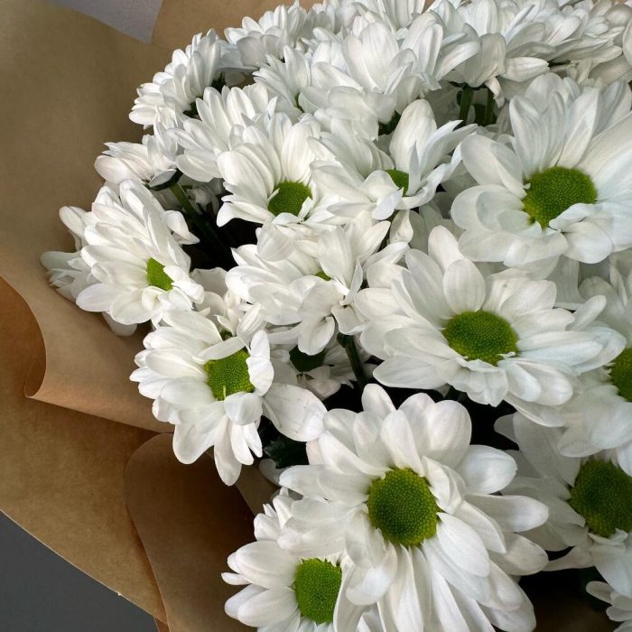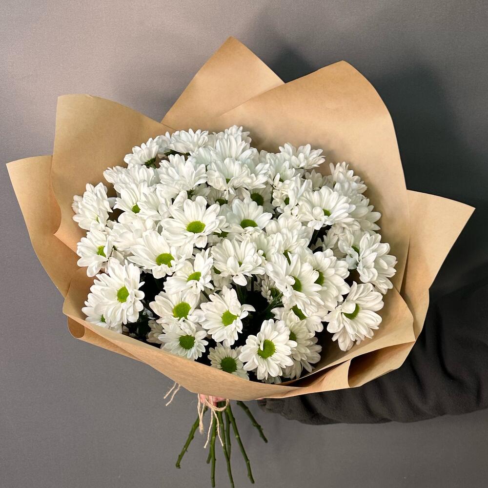 ≈ 101 белая ромашка - 11 веток хризантем с оформлением