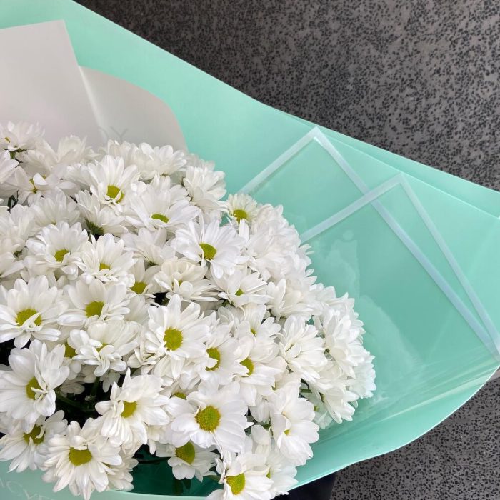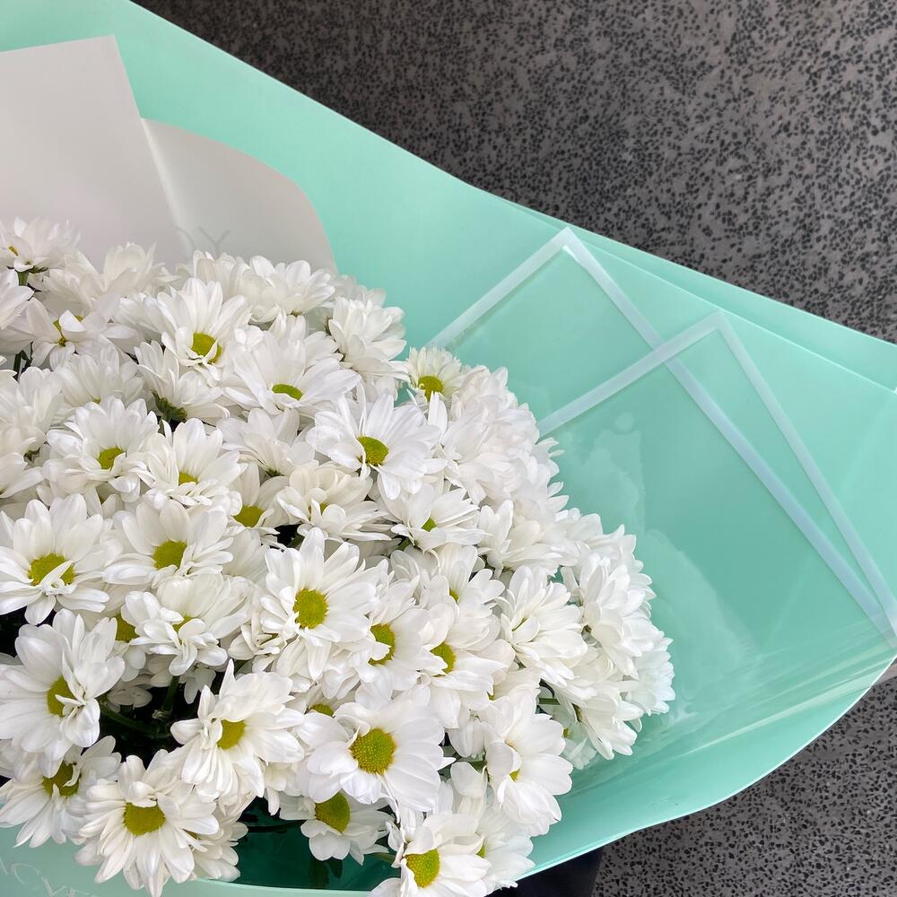 Лента атласная – 2 шт.Хризантема Ромашковая – 13 шт.Фоамиран (упаковка) – 4 шт.подложка бумажная – 2 шт.