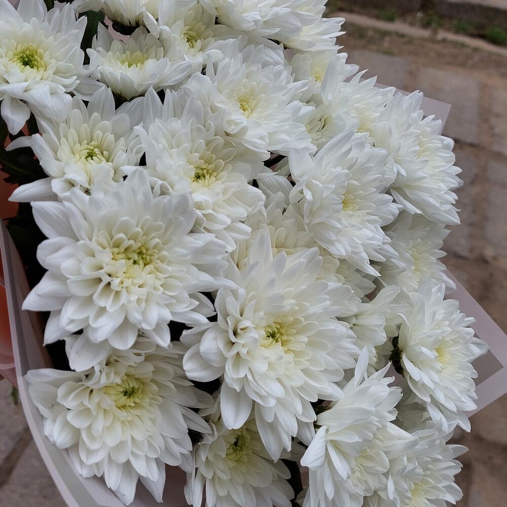 Букет из 5 белоснежных хризантем