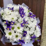 Букет из кустовой хризантемы и ирисов «Блю Мейджик»