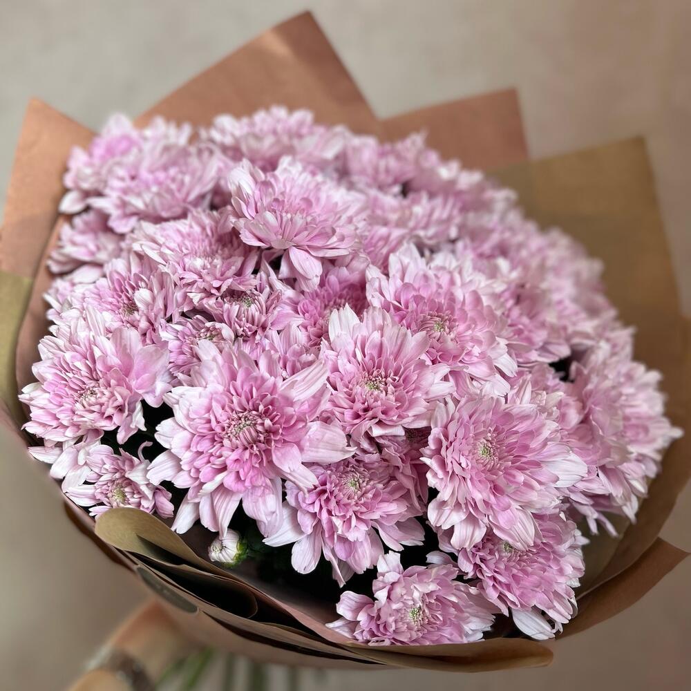 Кустовая хризантема – 11 шт.декоративная упаковка – 1 шт.Атласная лента – 1 шт.