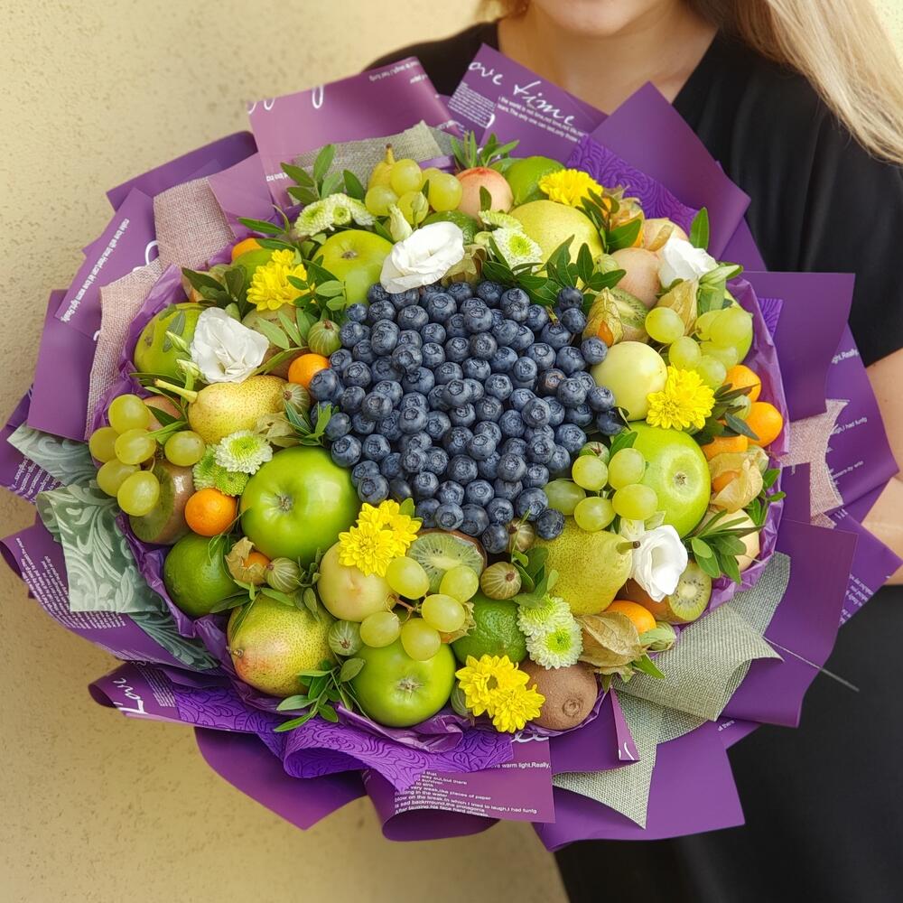 Оригинальный и по истине необычный премиальный букет выполняется с использованием ягод голубики , фруктов в зеленых оттенках и живых цветов.Дарится на юбилеи и значимые даты. Вызывает восторг как у женщин , так и мужчин. Очень детальная модель. WOW эффект гарантирован.Букет … Показать ещёупаковывается в аленку слюду и доставляется в транспортировочной коробке , которая может заменить вазу.