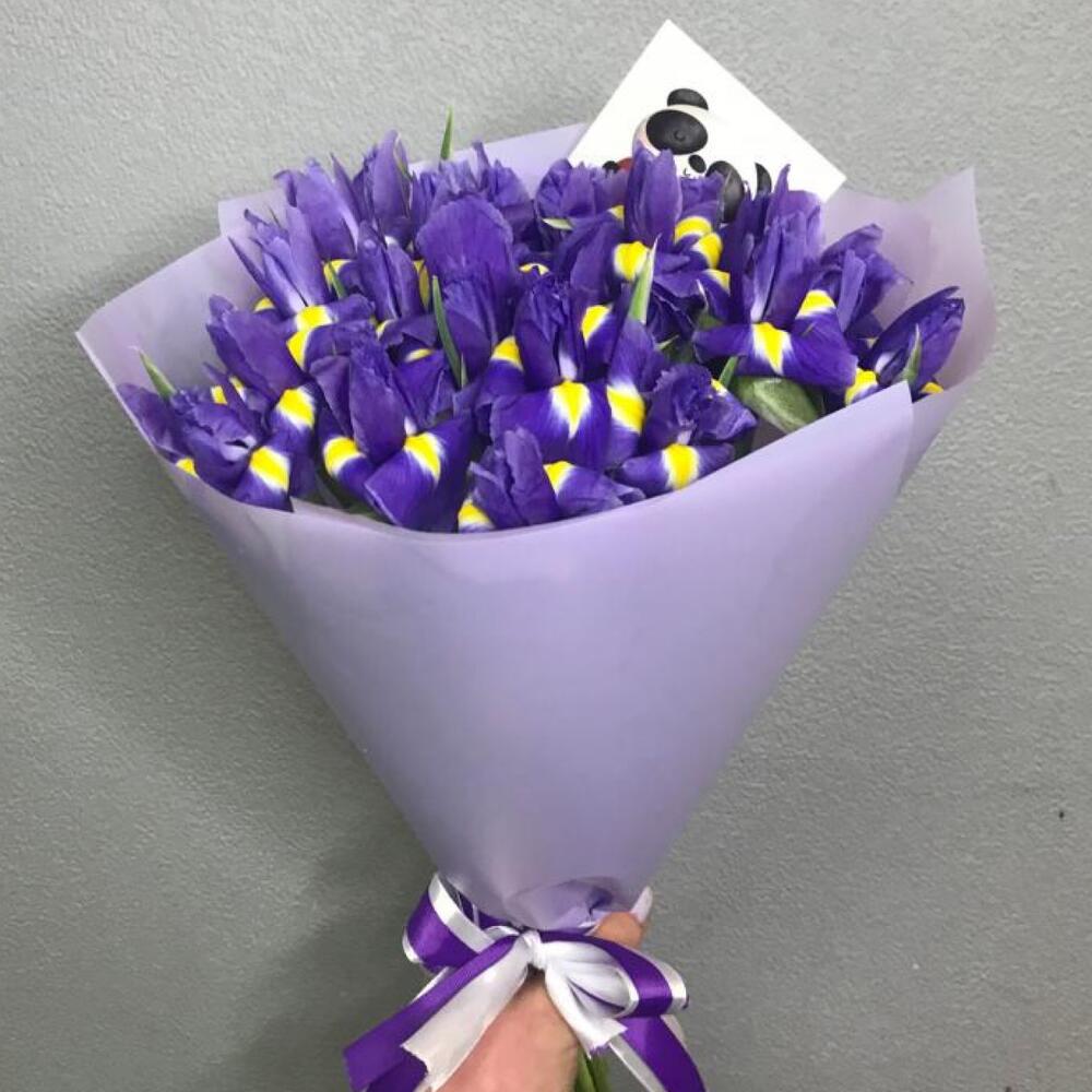 Ирис – 25 шт.Лента атласная – 2 шт.Фисташка – 4 шт.Открытка – 1 шт.Упаковка дизайнерская – 1 шт.