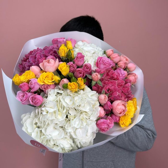 Гортензия – 4 шт. кустовые розы – 10 шт.