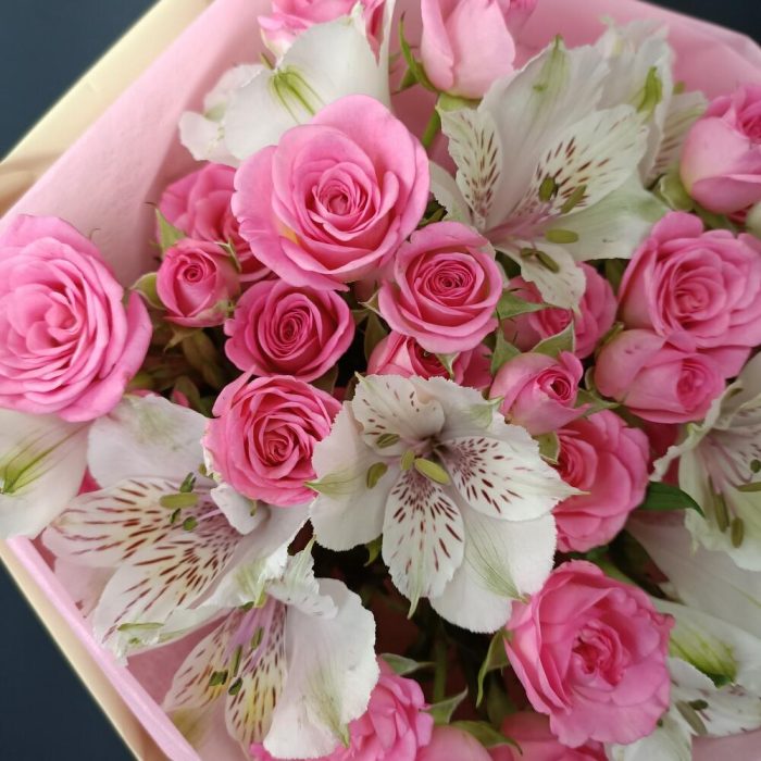 Розовый зефир с альстромерией и кустовой розой