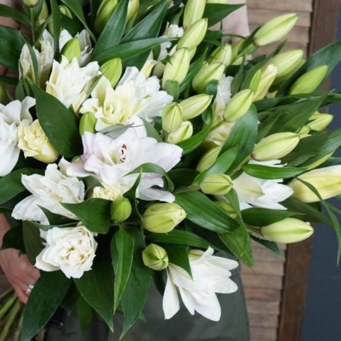 лилия пионовидная – 11 шт.Лента атласная – 1 шт.