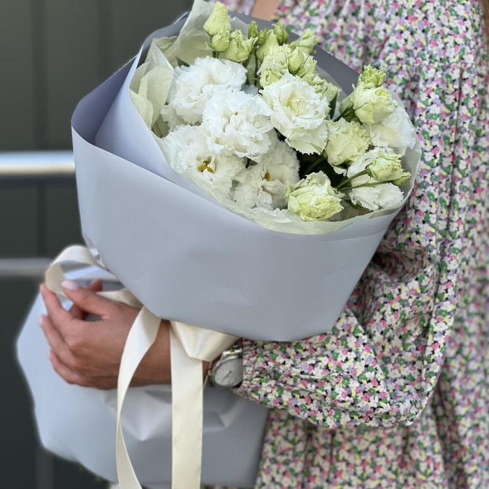 Писташ – 2 шт. Эустома – 5 шт. Оформление – 1 шт.
