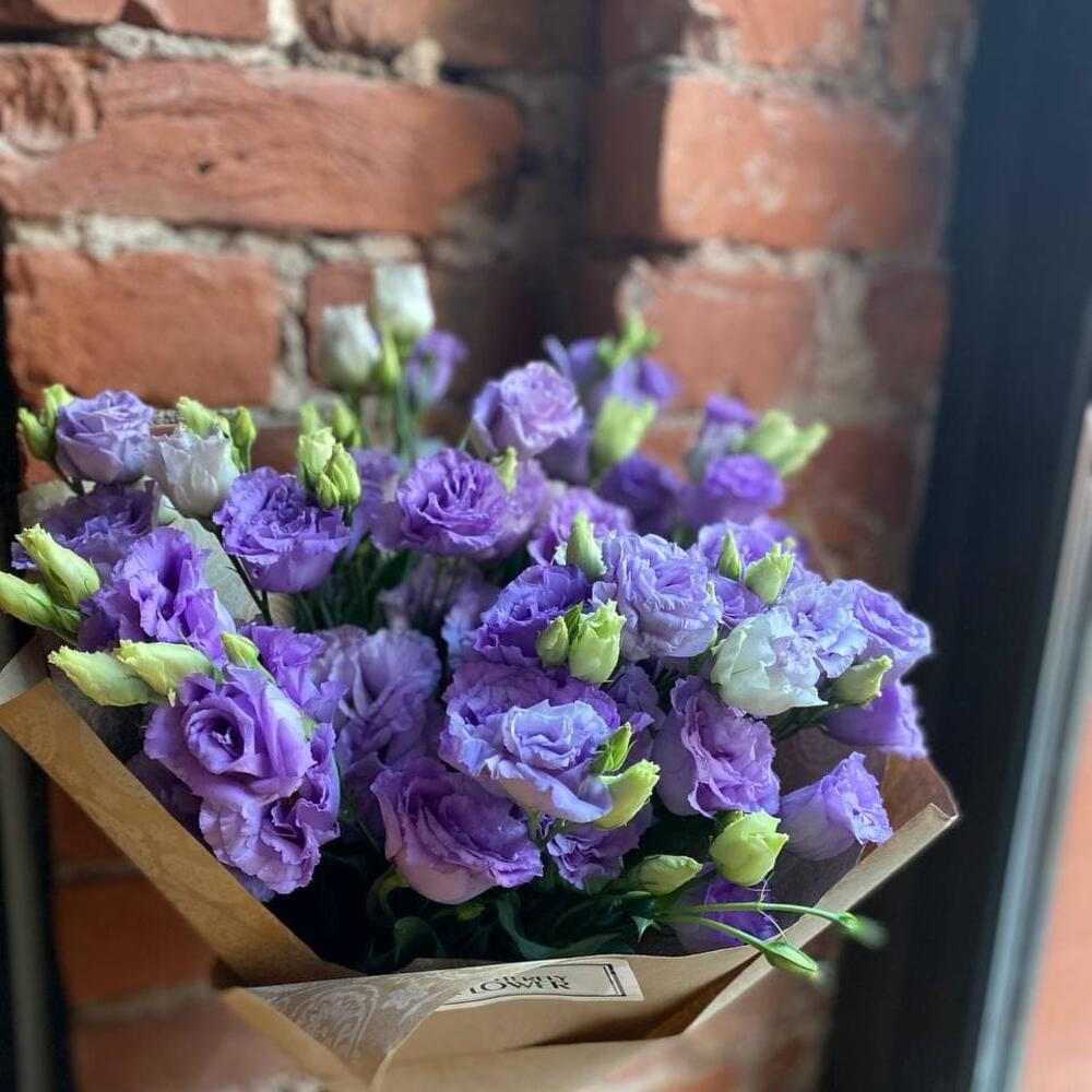 Букет из 11 сиреневых эустом (лизиантусов) в стильной упаковке “Марлен”