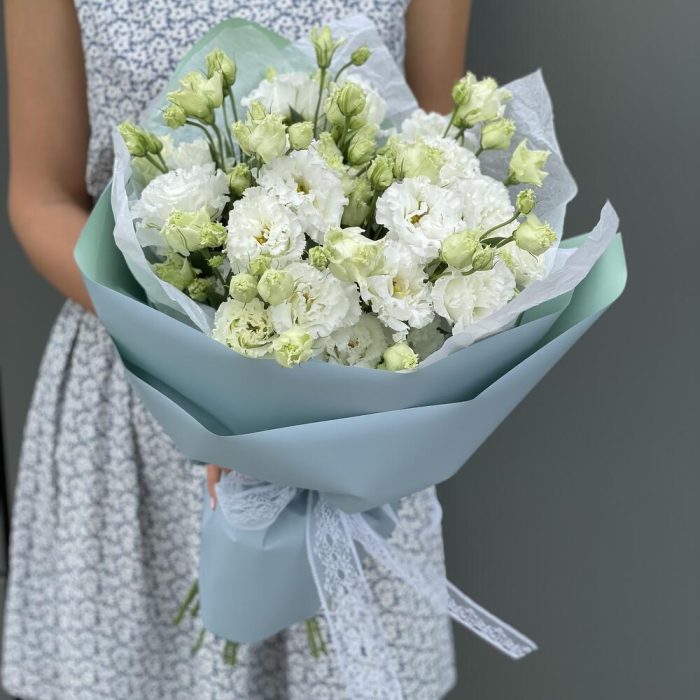 Букет из кружевной белоснежной эустомы в офрмлении!