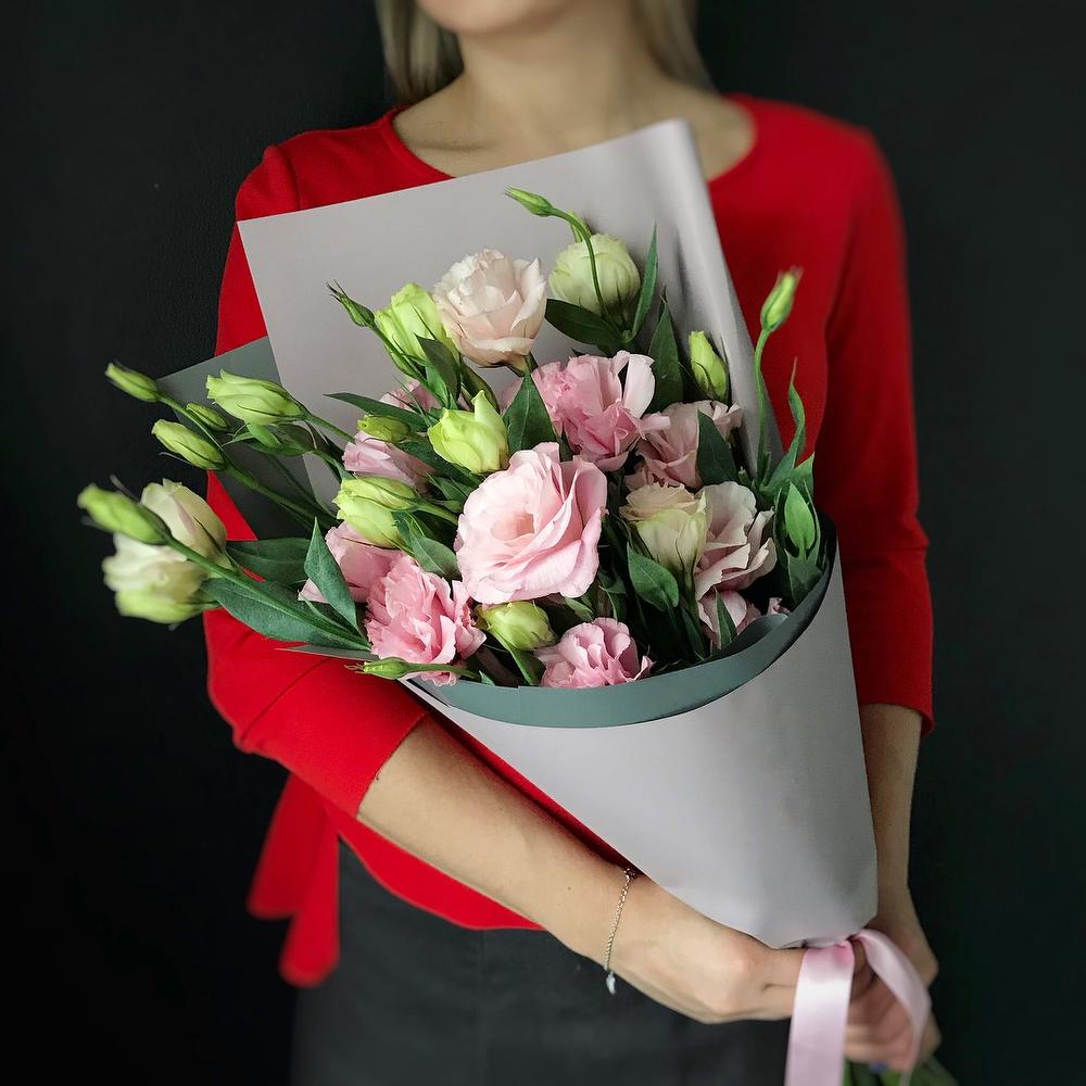 Букет лизиантуса в современной упаковке