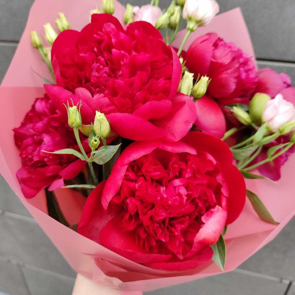 Букет с бордовыми пионами