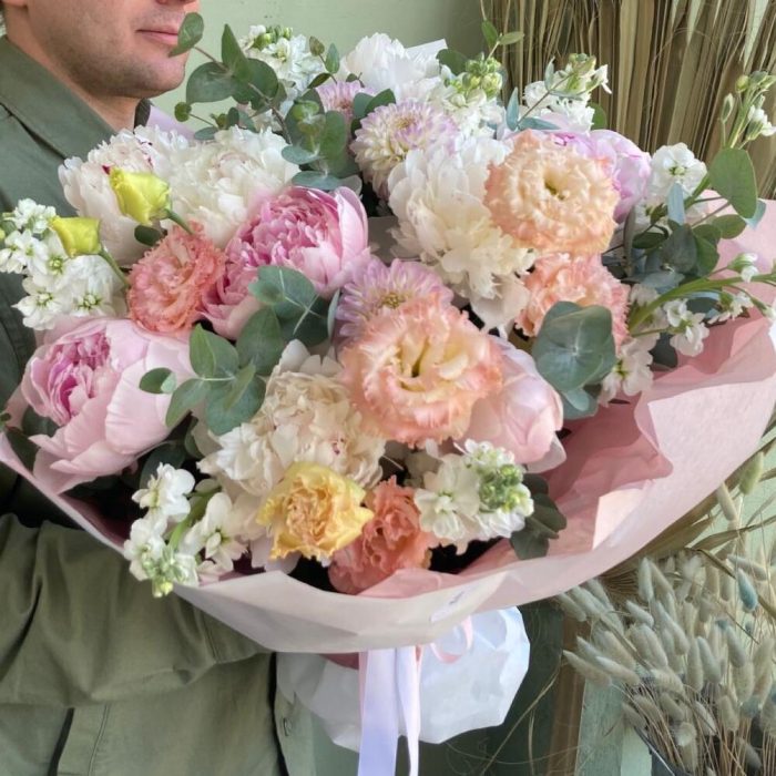 Букет с пионами и душистой маттиолой